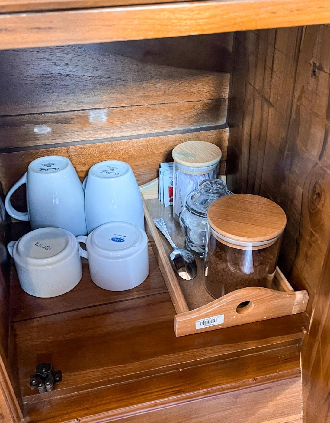 Shared stationery such as printed menus, magazines, pens, and paper removed