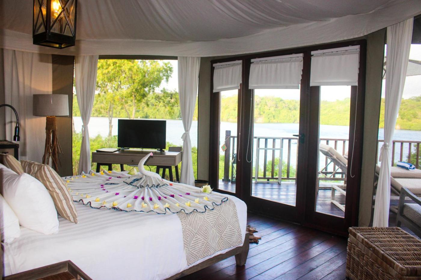 Jungle Luxury Tent. The tent provides air conditioning, a minibar, a balcony with sea views as well as a private bathroom featuring a shower. The unit offers 1 bed. ;