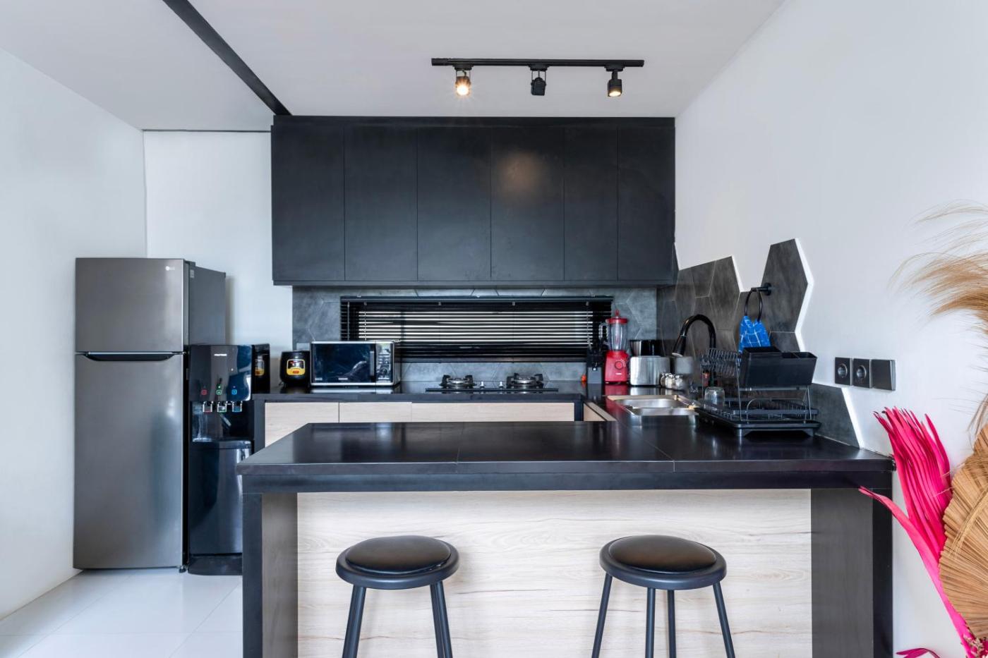 One-Bedroom Villa. This villa features a private pool. Boasting a private entrance, this air-conditioned villa features 1 living room, 1 separate bedroom and 2 bathrooms with a shower and a hairdryer. Guests can make meals in the fully equipped kitchen that has a stovetop, a refrigerator and kitchenware. Featuring a terrace with pool views, this villa also features a tea and coffee maker and a flat-screen TV with streaming services. The unit has 1 bed.