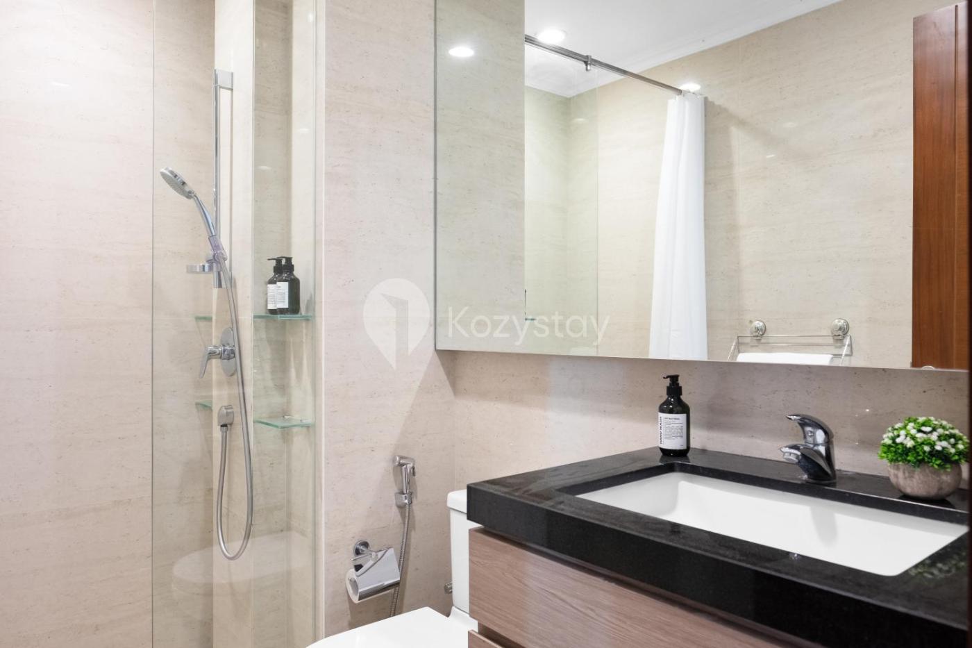 Three-Bedroom Apartment. The private pool is the special feature of this apartment. The spacious apartment features 3 bedrooms and 2 bathrooms with a shower and free toiletries. A kitchen equipped with a stovetop, a refrigerator and a microwave is available for cooking and storing food. This apartment has a washing machine, a dining area, a flat-screen TV with streaming services and a balcony. The unit offers 4 beds.