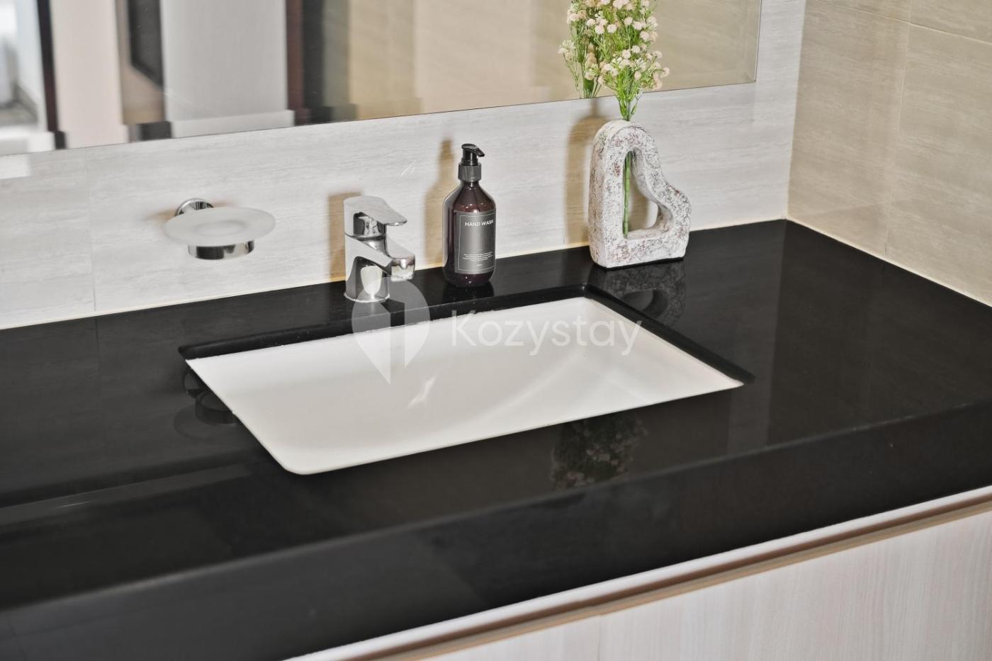 Two-Bedroom Apartment. This spacious apartment consists of 1 living room, 2 separate bedrooms and 2 bathrooms with a shower and free toiletries. The fully equipped kitchen features a stovetop, a refrigerator, kitchenware and a microwave. The air-conditioned apartment provides a flat-screen TV with streaming services, a washing machine, a seating area, a dining area as well as city views. The unit offers 3 beds.