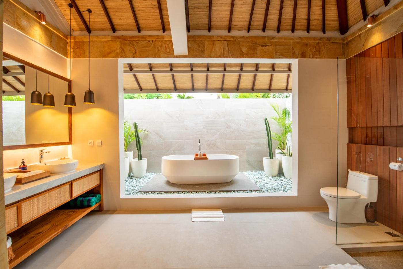 Deluxe Double Room. Featuring traditional furnishings, this room has spacious living areas and an outdoor courtyard attached to the bathroom. The air-conditioned room has a satellite TV and a minibar. Shower facilities are provided in the private bathroom. A hairdryer, a bathrobe, and free toiletries are provided. This type of room has its own Balinese bale. ;