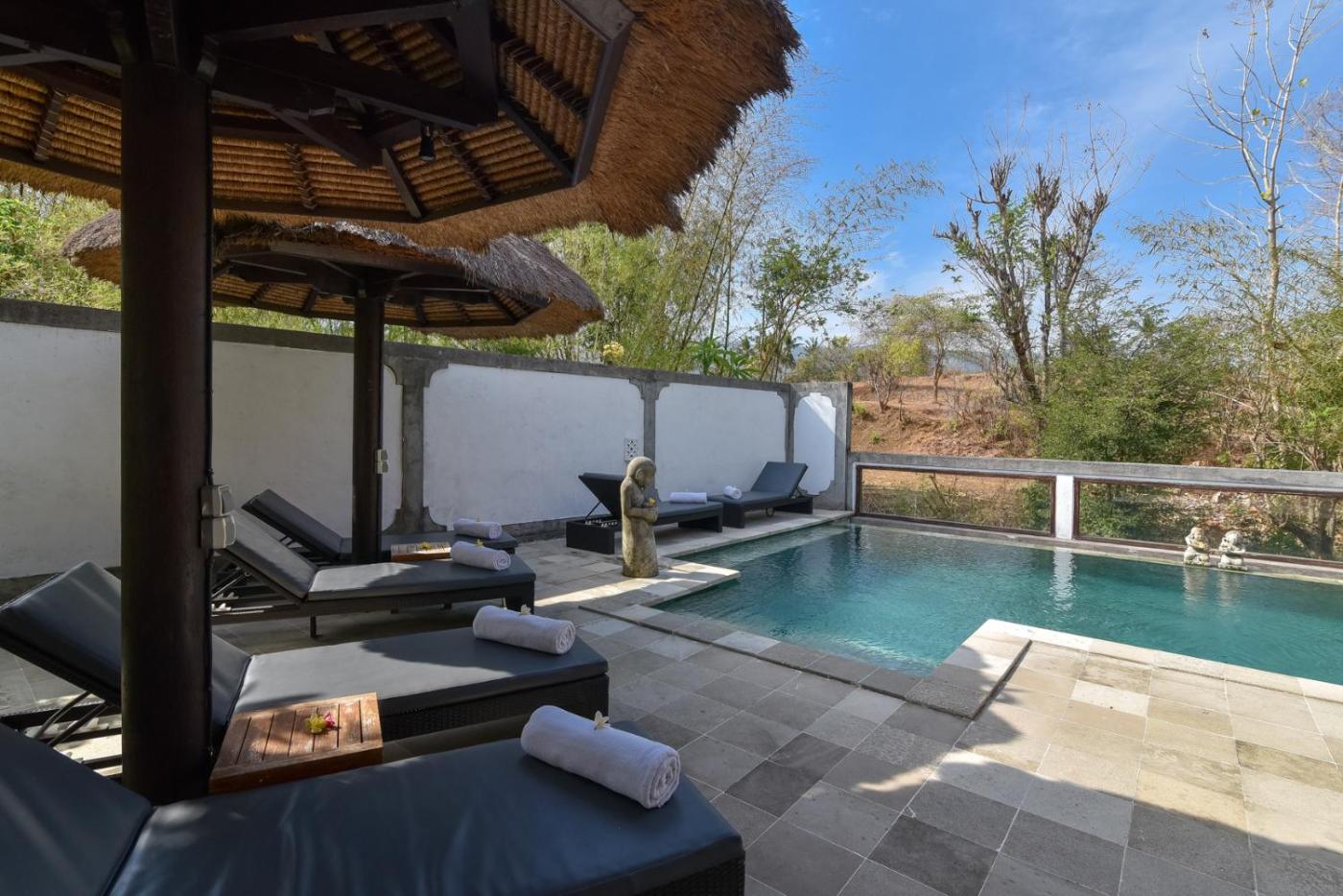 Three-Bedroom Villa. The private pool is the standout feature of this villa. Guests can make meals in the kitchen that features a stovetop, a refrigerator, an oven and a microwave. The spacious villa features air conditioning, a washing machine, a private entrance, a tea and coffee maker and a flat-screen TV with cable channels. The unit has 3 beds.