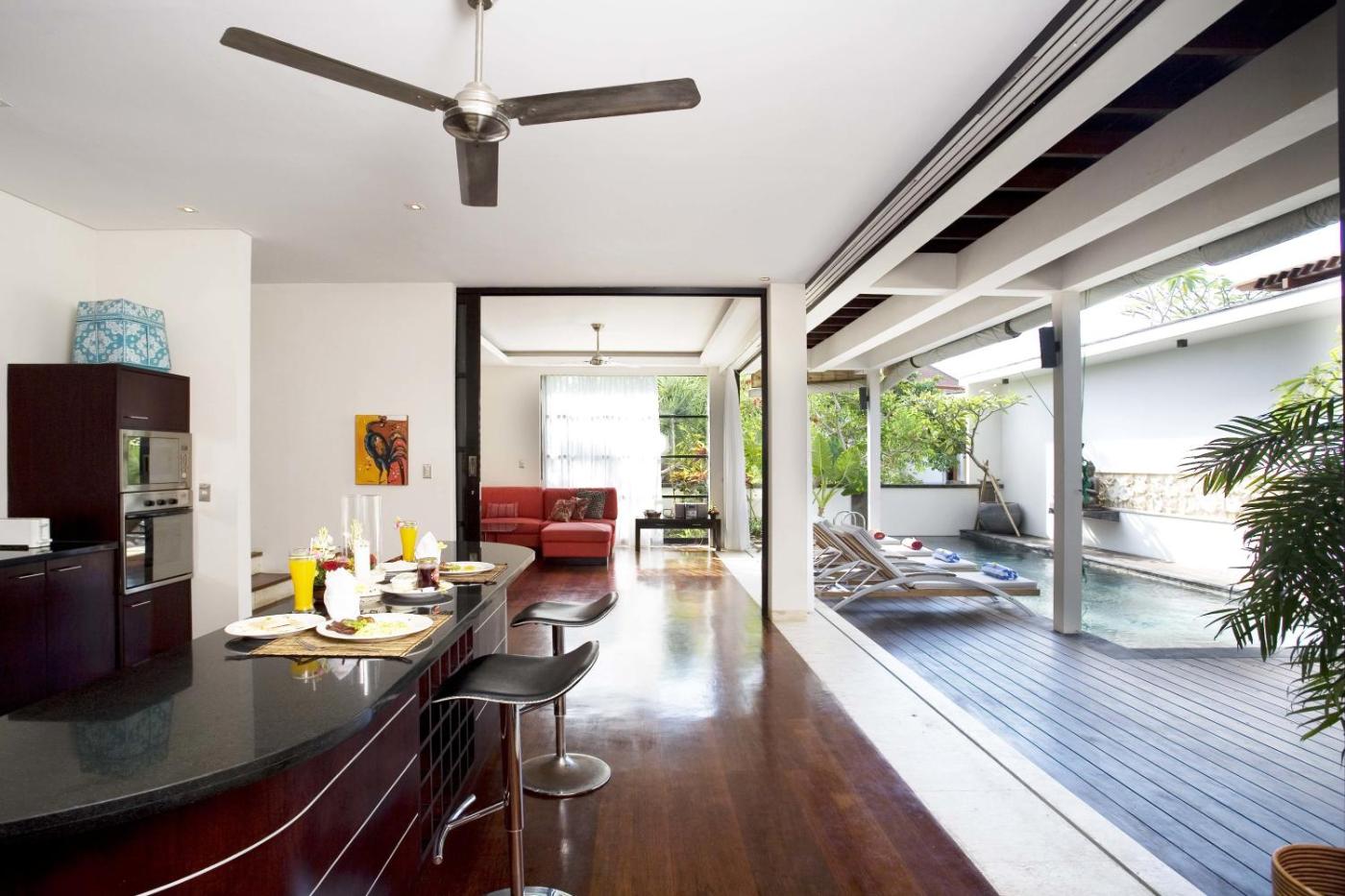 All villas have modern amenities provided, including a fully equipped kitchen. Each villa has household staff to do the daily chores while you relax by the pool or head off on a day of exploring the beautiful island of Bali.