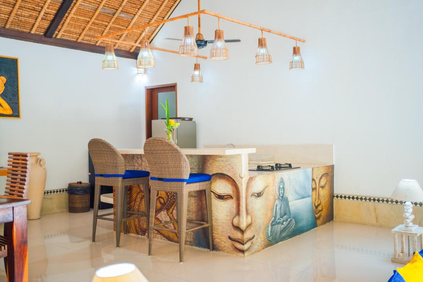 Two-Bedroom Villa. The private pool is a top feature of this villa. This spacious villa comes with 1 living room, 2 separate bedrooms and 2 bathrooms with a walk-in shower and free toiletries. In the kitchen, guests will find a stovetop, a refrigerator, kitchenware and a microwave. The air-conditioned villa features a flat-screen TV with streaming services, a private entrance, a seating area, a dining area as well as garden views. The unit has 2 beds.