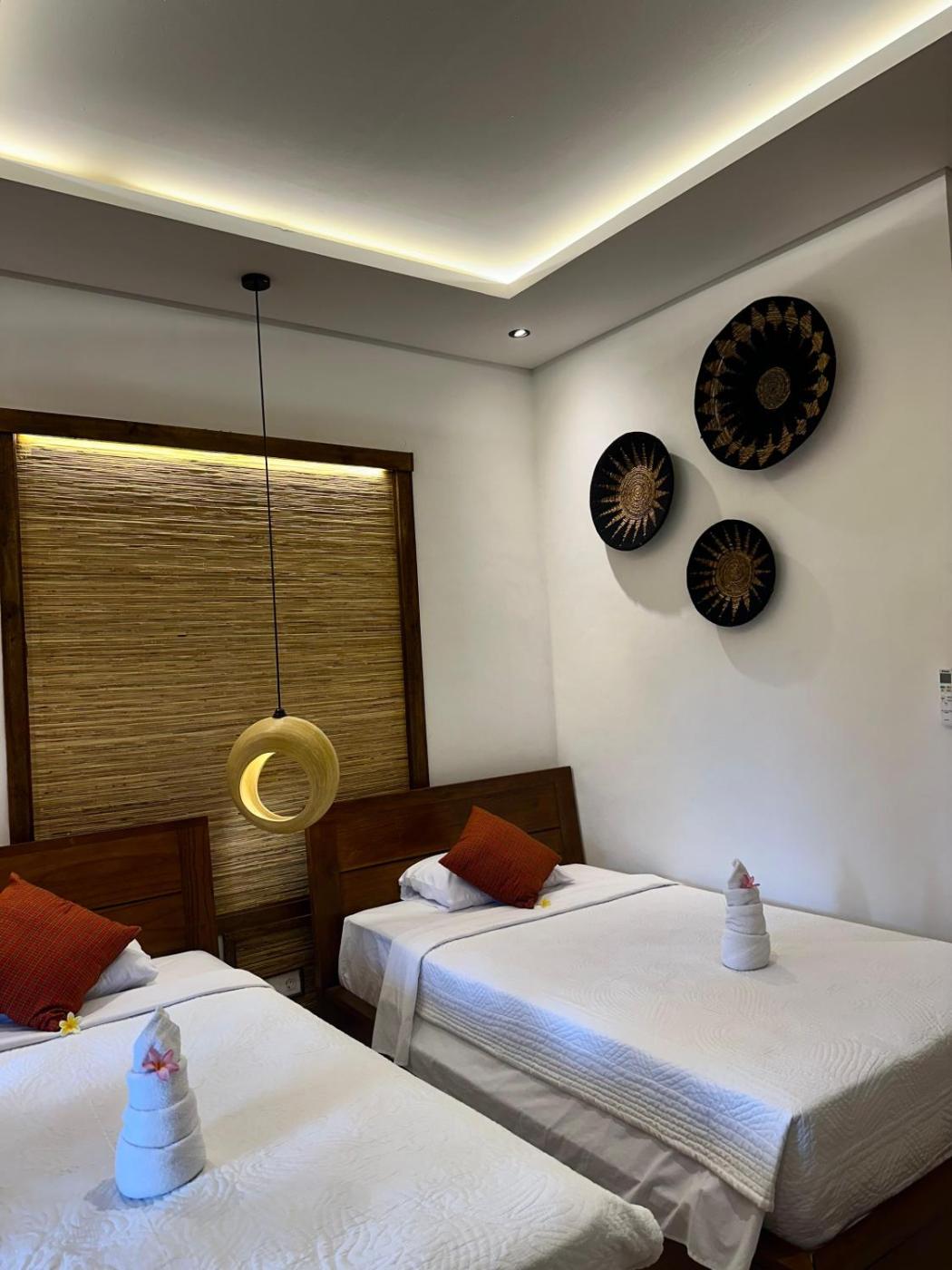 Deluxe Family Room. Offering views of the rice paddies, this family room has a double bed, a twin bed and 2 bathrooms. ;