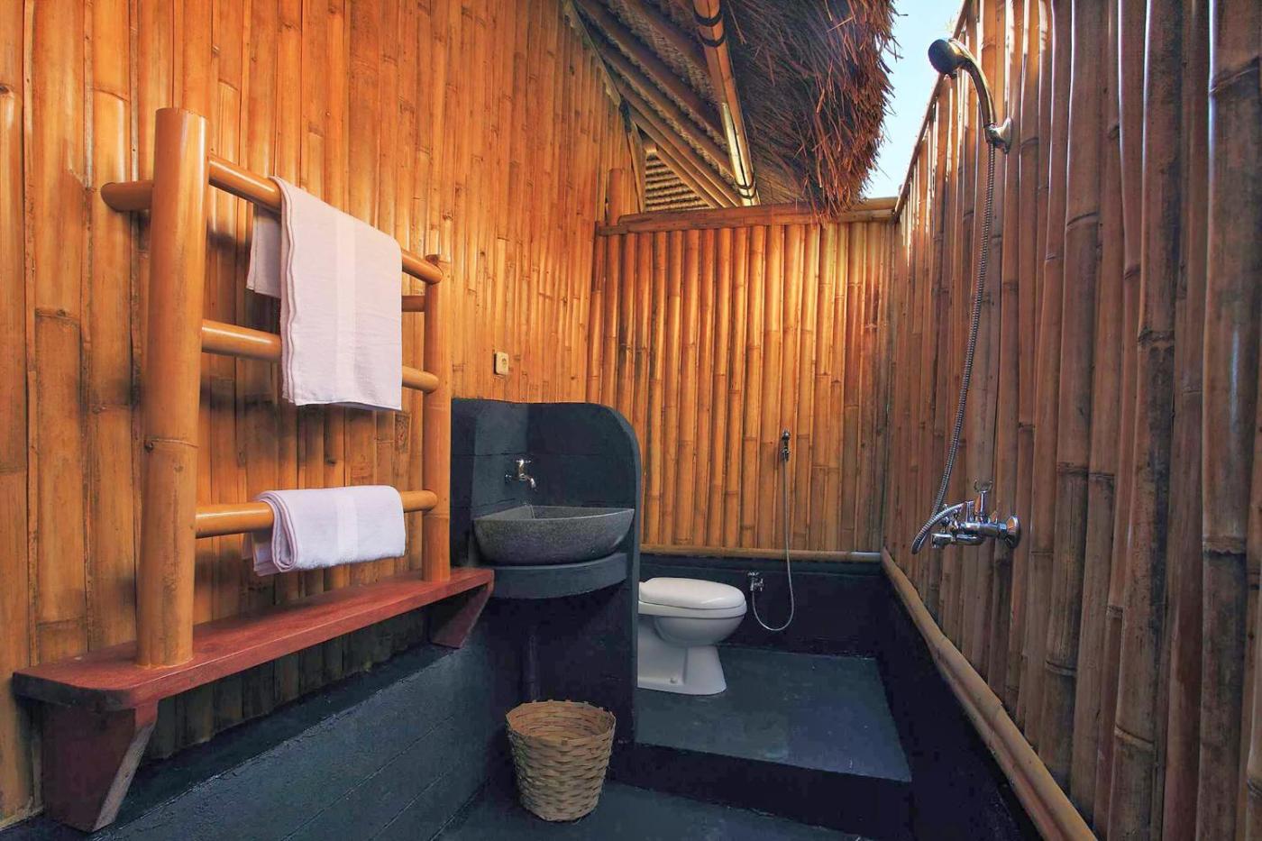 All units includes a fan, wardrobe and private bathroom facilities. Each bungalow is fitted with traditional bamboo thatched roofs. The restaurant serves Indonesian cuisine.
