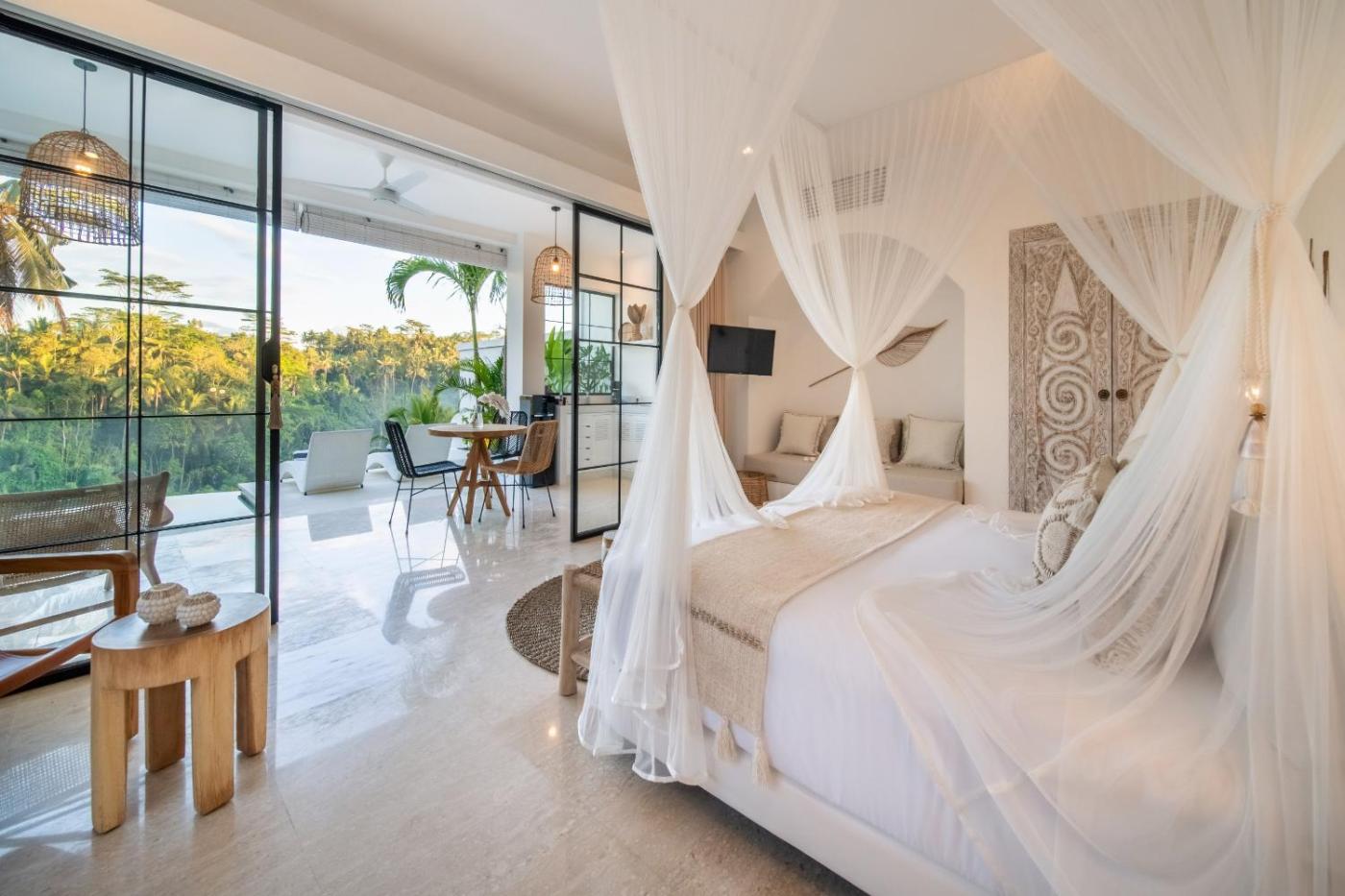 One-Bedroom Villa. This villa features a private pool. The air-conditioned villa has 1 bedroom and 1 bathroom with a shower and a hairdryer. Guests can make meals in the kitchen that has a stovetop, a refrigerator, kitchenware and an oven. The villa offers a tea and coffee maker, a safe deposit box, as well as a terrace and a balcony. The unit has 2 beds.