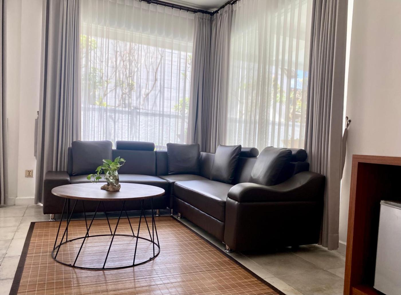 King Suite with Pool View. This suite comes with 1 living room, 1 separate bedroom and 1 bathroom with a bath and free toiletries. The air-conditioned suite features a flat-screen TV, a tea and coffee maker, a wardrobe, a tiled floor as well as pool views. The unit has 2 beds. ;