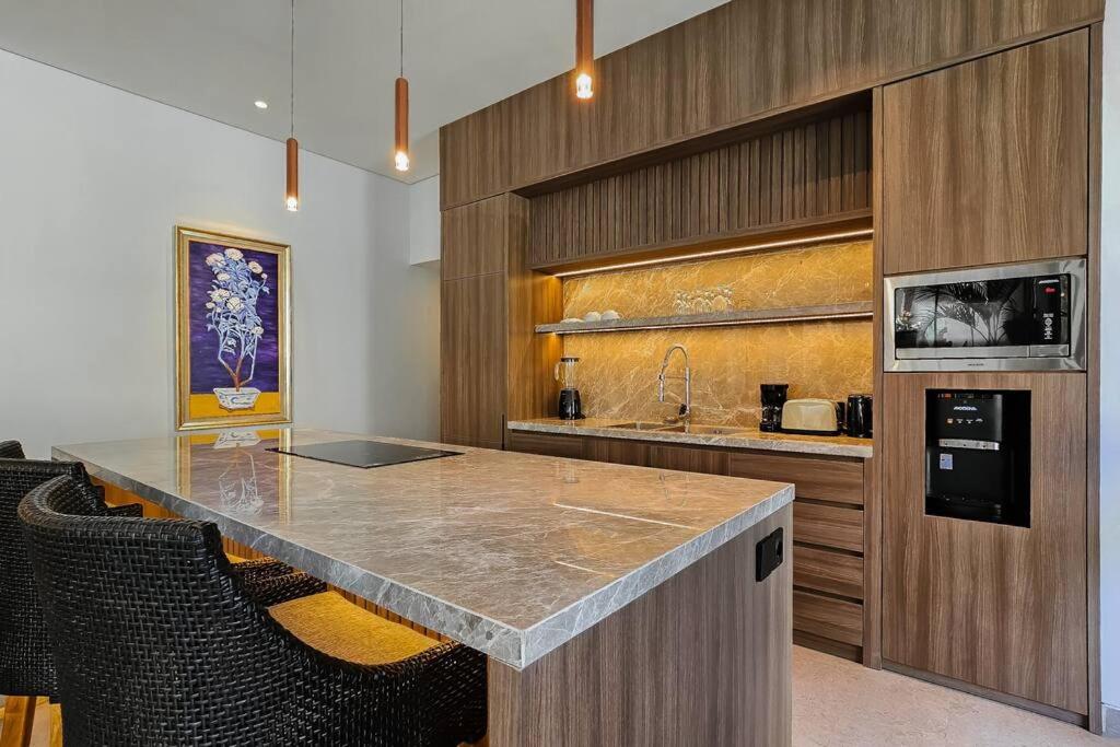 Three-Bedroom Villa. The private pool is a top feature of this villa. The well-equipped kitchen has a stovetop, a refrigerator, an oven and a microwave. The spacious villa features air conditioning, a private entrance, a tea and coffee maker as well as a terrace with garden views. The unit has 1 bed.