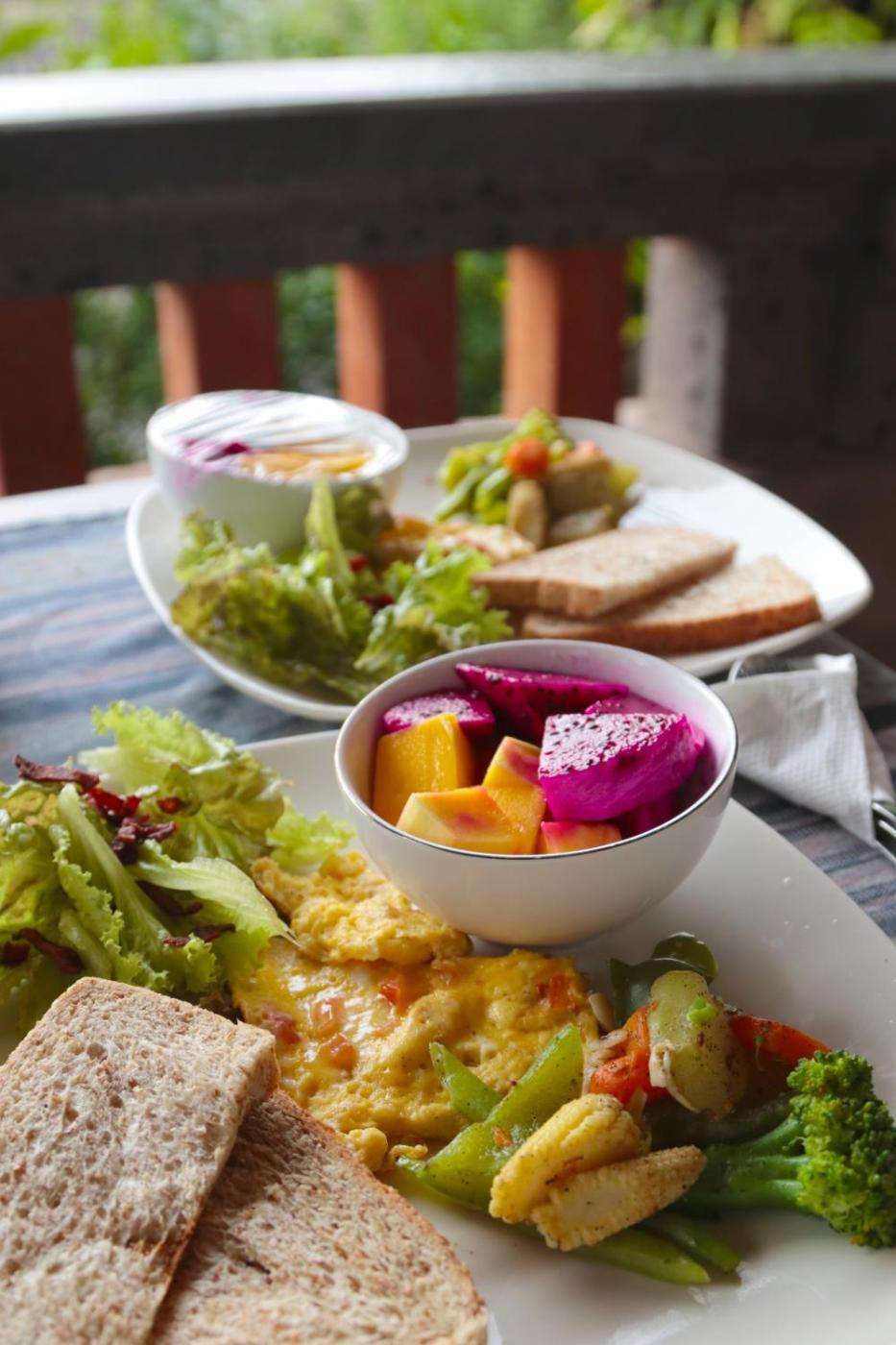 The breakfast offers vegetarian, vegan options and warm dishes and fruits are being served.