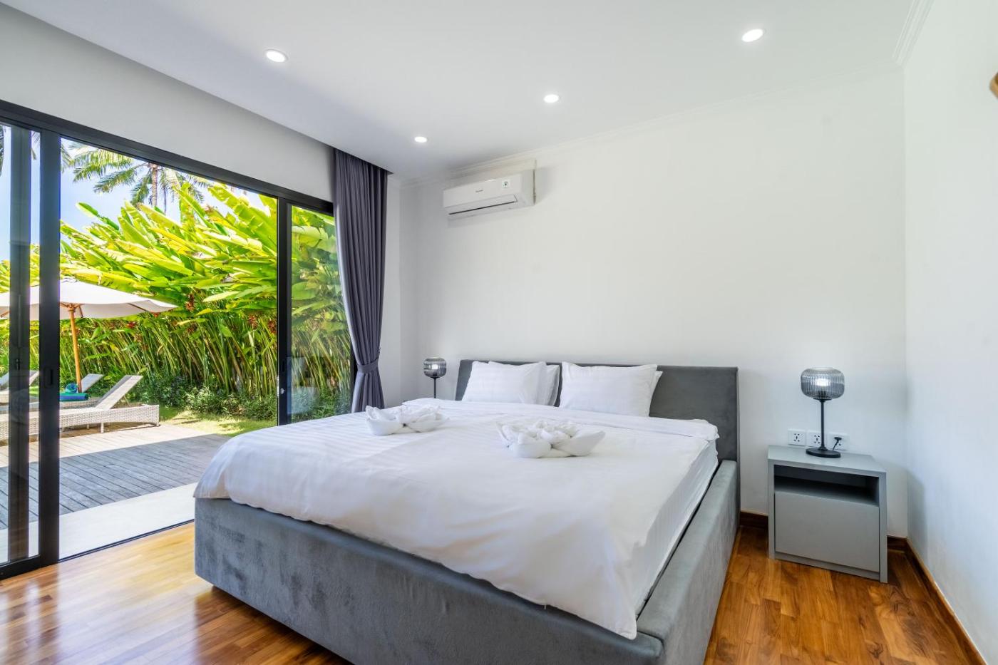 Villa. This villas standout features are the pool with a view and hot tub. Boasting a private entrance, this air-conditioned villa features 1 living room, 3 separate bedrooms and 3 bathrooms with a walk-in shower and a bath. Guests will find a stovetop, a refrigerator, kitchenware and a microwave in the well-fitted kitchen. The villa also comes with a barbecue. The spacious villa features a flat-screen TV with streaming services, soundproof walls, a seating area, a dining area as well as garden views. The unit has 4 beds.