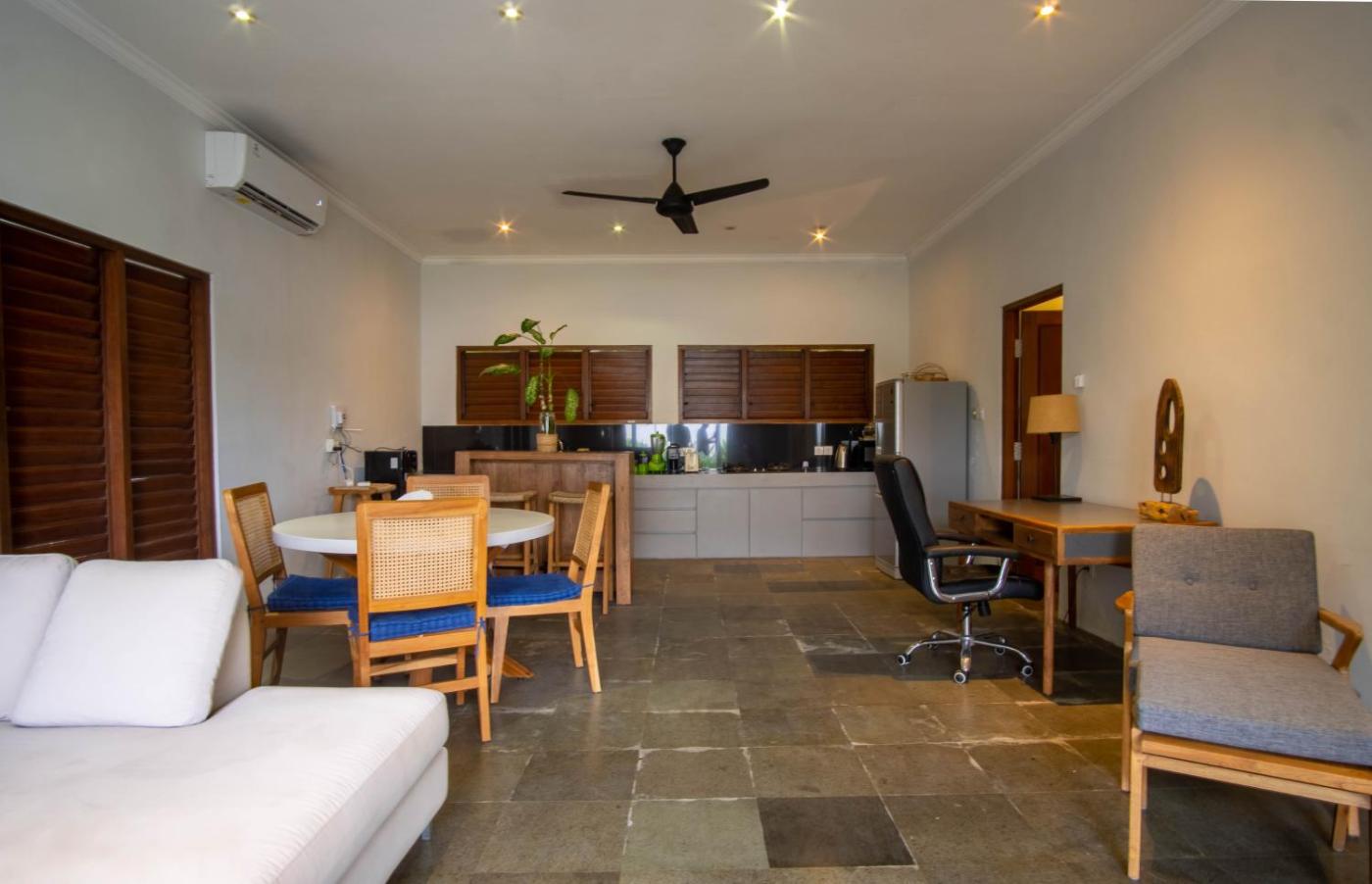 Two-Bedroom Villa. The private pool is the special feature of this villa. Featuring a private entrance, this air-conditioned villa comprises 2 bedrooms and 2 bathrooms with a shower. The well-equipped kitchen features a stovetop, a refrigerator, kitchenware and a microwave. Boasting a terrace with pool views, this villa also provides a washing machine and a flat-screen TV. The unit offers 2 beds.
